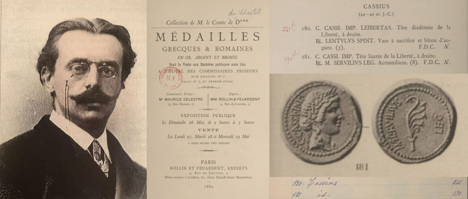 Die Münze beginnt ihre dokumentierte Reise in der Sammlung des belgischen Vicomte Albéric du Chastel de la Howardries (1842–1919) und wird mit einem Gipsabdruck in einer prächtigen Auktion angeboten.