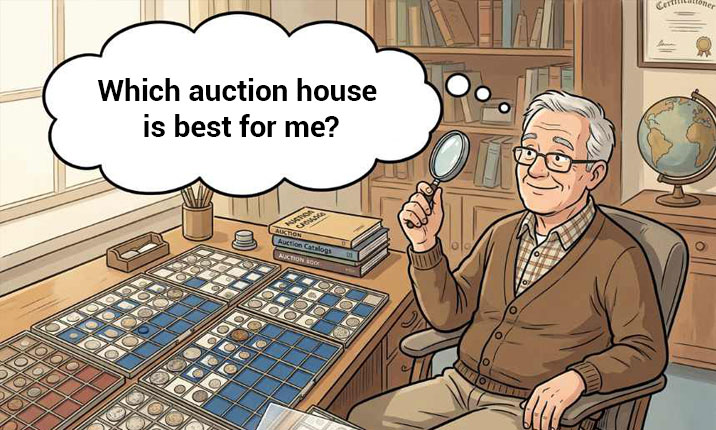 and worse pieces in the collection. First, get an overview, and then compare which auction house offers items similar to what you have. An auction house that frequently offers coins like yours is most likely to have exactly the clientele that can appreciate the quality of your coins and honor them with the highest possible bids.