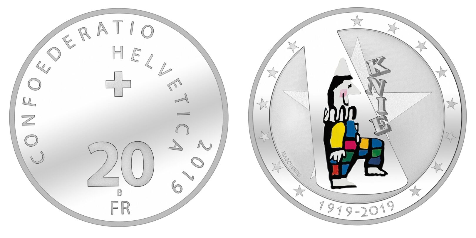 En 2019, Swissmint a dédié une pièce commémorative au Cirque national suisse Knie. Il s’agissait de la première pièce d’un pays européen à aborder ce thème. Pour la première fois, des artistes itinérants ont été considérés comme un symbole de l’État et honorés par une pièce commémorative.