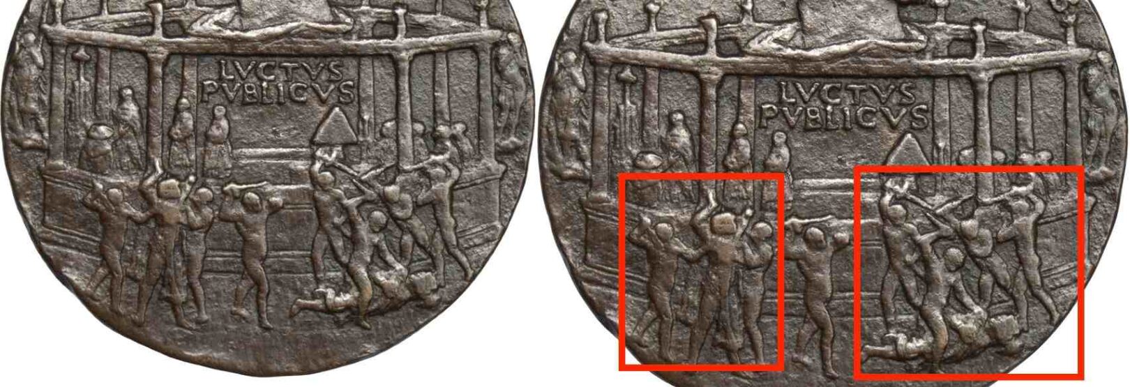 Détail de la médaille de Bertoldo di Giovanni représentant l'assassinat de Giuliano de Médicis