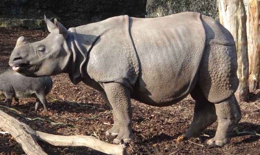 Un rhinocéros indien au zoo de Bâle. Photo : KW.