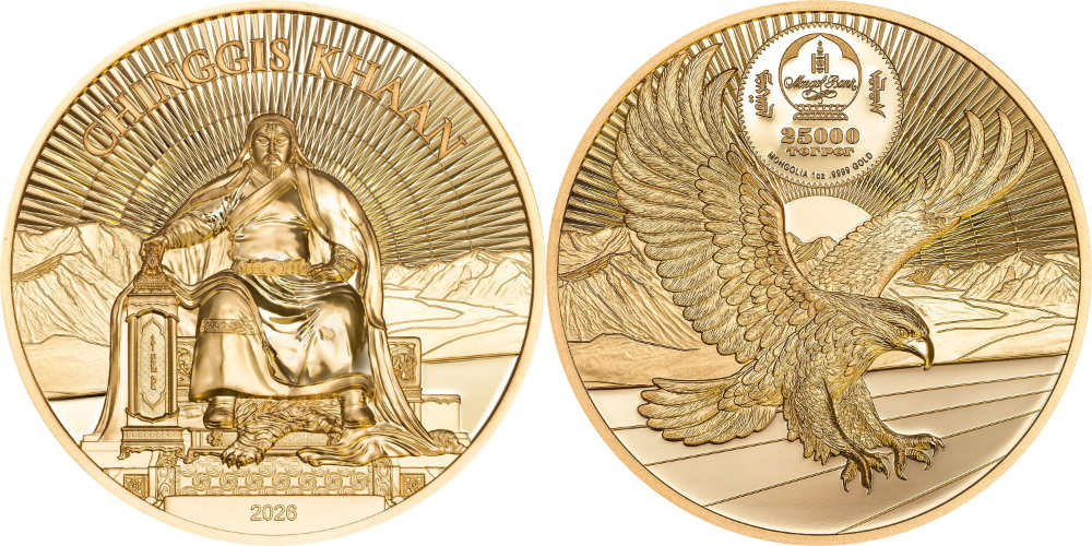 CIT a créé pour la Mongolie une pièce qui, à première vue, reprend un thème courant sous une forme classique. Gengis Khan est représenté sur la face de la pièce. Cette représentation fait référence à une statue qui a été dévoilée à Oulan-Bator le 1er mars 2025. Son musée abrite désormais une statue de Gengis Khan de 7 mètres de haut et pesant 13 tonnes, entièrement recouverte d’or mongol, dont l’image figure sur une pièce en argent, en or et en petit or de CIT.