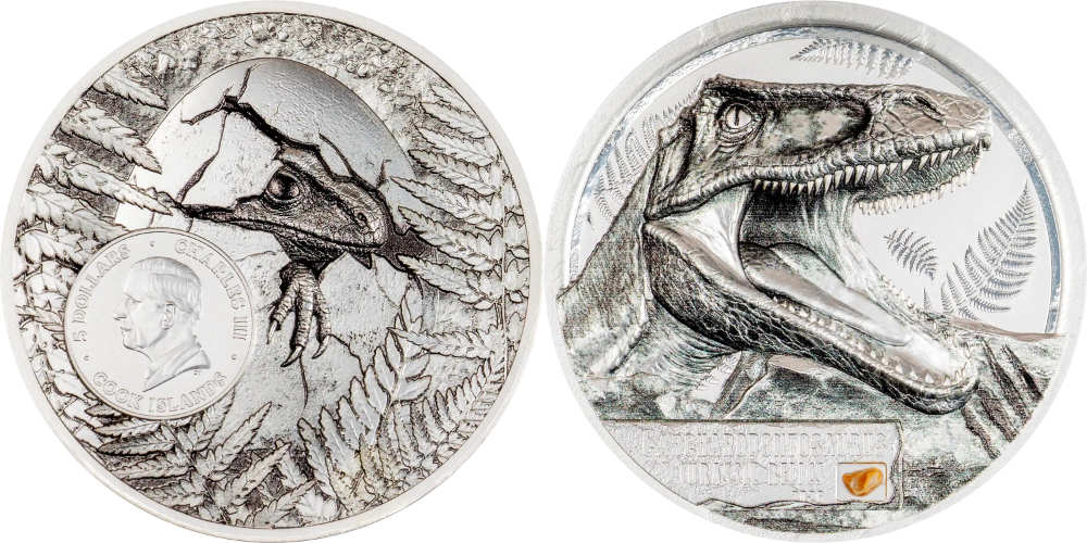 Terminons ce bref aperçu du lancement hivernal de CIT avec un thème intemporel. Les dinosaures restent un objet de collection très prisé. Et lorsqu’une jolie pièce à l’effigie d’un dinosaure contient également un minuscule fragment de fossile précieux, nous avons là l’objet idéal pour le marketing croisé. Le Carcharodontosaurus sur la pièce de 5 dollars des Îles Cook n’intéressera pas seulement les collectionneurs de pièces, mais aussi tous les collectionneurs de fossiles qui ne pourront jamais s’offrir une dent complète de Carcharodontosaurus. Le fait que les designers de CIT aient également réussi à intégrer ce que nous appelons aujourd’hui le « facteur mignon » dans le design est un coup de génie. Le design au revers plaît également aux jeunes femmes.