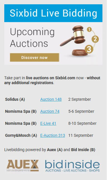 La nouvelle fonctionnalité d’enchères en direct sur Sixbid.com offre aux collectionneurs de pièces de monnaie une expérience d’enchères d’un tout autre niveau. Une seule connexion, une seule plateforme, une transparence totale et la possibilité de participer aux enchères organisées par AUEX, Bidinside et de nombreuses autres maisons de vente aux enchères.