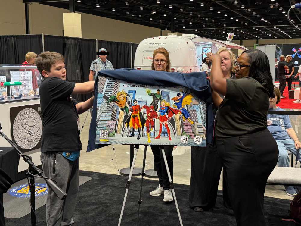La Monnaie américaine avait beaucoup à offrir aux visiteurs de l'ANA, notamment le dévoilement des dessins des prochaines pièces de la série Superhéros. Photo : UK