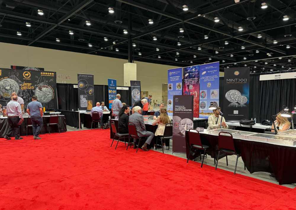 La Monnaie américaine était pratiquement la seule à s’être rendue à Oklahoma City avec une large gamme de produits et un personnel nombreux. En revanche, le coin où les autres monnaies du monde entier avaient installé leurs stands était ridiculement petit. À l’exception de la China Gold Coin Incorporation, qui appartient à l’État, il n’y avait que des monnaies privées et des distributeurs de pièces. Les grandes monnaies telles que la Monnaie royale canadienne, la Monnaie de Paris et la Monnaie autrichienne ont économisé le coût d’un stand. Cela ne signifie pas pour autant que leurs représentants étaient absents. Ils étaient tous assis dans le hall de l’hôtel Omni voisin, où ils faisaient des affaires avec des acheteurs américains en gros.