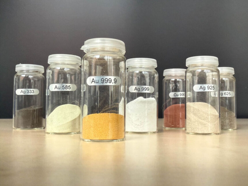 Pour produire un relief en relief, il faut d’abord créer une poudre de l’alliage souhaité. Pour cela, on fait fondre de l’or, de l’argent, du platine ou tout autre métal précieux ayant exactement la finesse que doit avoir le produit final. Le métal fondu n’est pas immédiatement coulé dans un moule, mais plutôt atomisé en minuscules particules à l’aide d’eau. La boue métallique obtenue est ensuite déshydratée au cours d’un processus en plusieurs étapes ; la poudre restante est finement tamisée.