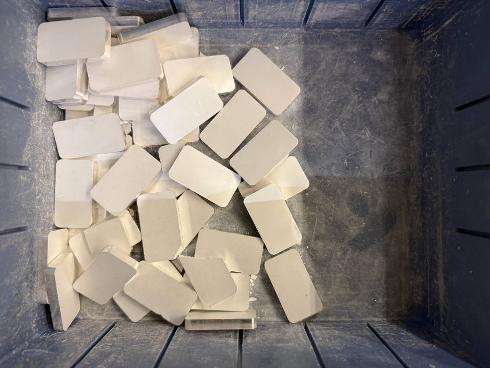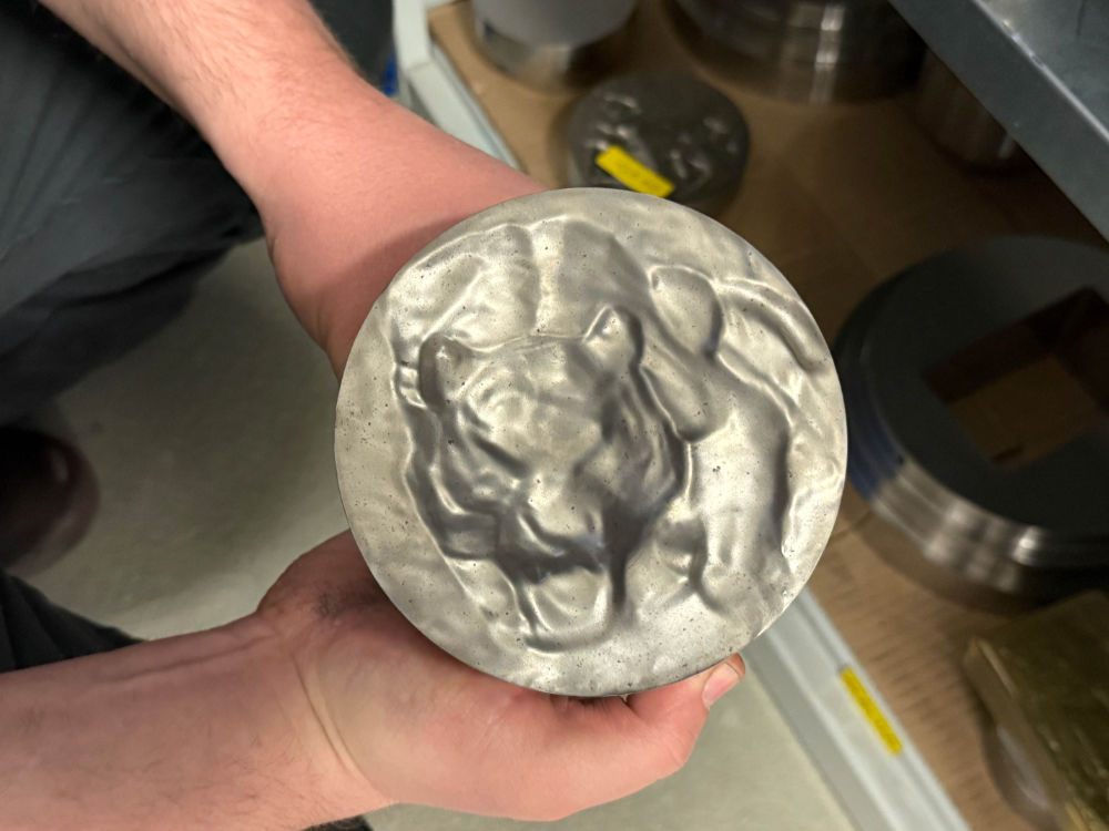 La poudre subit alors un processus familier à tous ceux qui ont joué dans le sable lorsqu’ils étaient enfants : le matériau est pressé dans un moule. Pour rendre ce moule durable, le matériau est fritté. Dans le langage courant, ce processus est décrit à juste titre comme une « cuisson ». Les particules de poudre se lient entre elles pour former une ébauche flexible mais stable, souvent façonnée de manière à ce que le matériau soit disponible aux endroits de l’ébauche où il sera nécessaire ultérieurement pour la frappe.